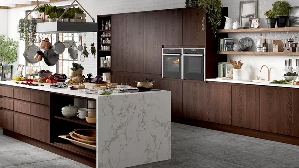 BACK TO MECHANISMS << >> FORWARD TO WORKTOPSYour worktop serves a few possible functions. Of course somewhere to prep for cooking. But also as somewhere to eat. Or to work. Or socialize. As well as being a decorative element of the room with its own aesthetic. So getting the look and finish right is an important part of the overall design. Choose from laminates like Formica, through composite acrylic materials like Corian and Maia and solid acrylic like Minerva. Perhaps solid timber is prefered. Or solid natural stones like granite and marble. Man-made equivalents in quartz are a popular alternative, having all the benefits and fewer downsides of their earth-made stone siblings.