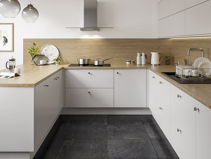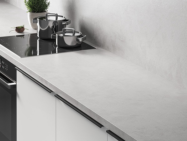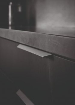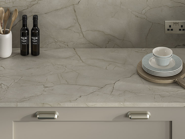 BACK TO HANDLES << >> FORWARD TO SPLASHBACKSBelow is Formica's beautiful slimline solid worktop, which assists with very modern aesthetics and simple elegant lines.