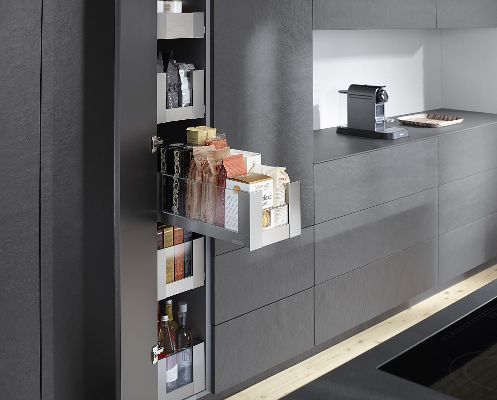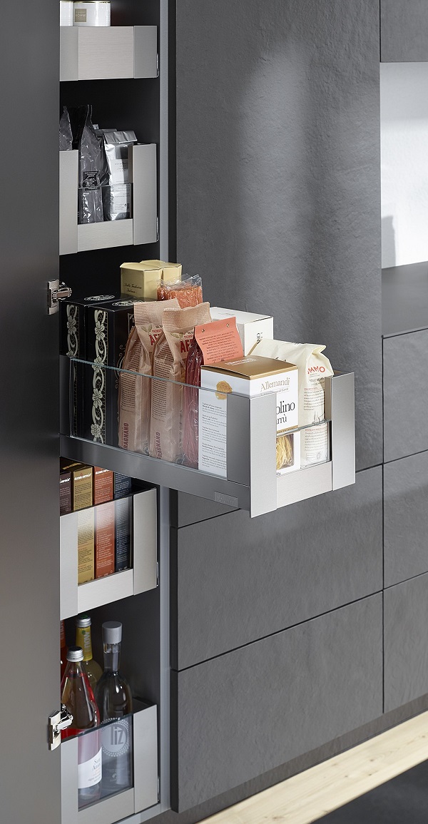 These are a selection of our favourite mechanisms / accessories / internal fittings. Ones that we know work well and customers recommend. You may want as many pullouts and drawers as can practically be installed. Or a clever arrangement to the corner cupboard to make your life easier. Perhaps even a feature for more ergonomically accessible wall cabinets. And of course, making the most of a pantry / larder cupboard for foodstuffs is as essential as your fridge !