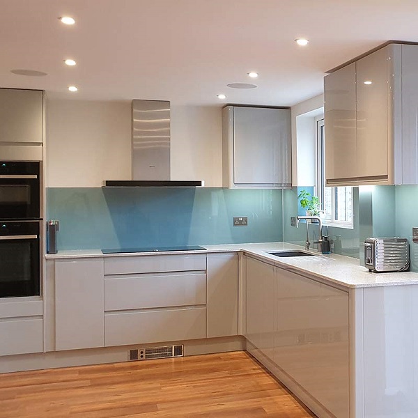 Protect your walls from staining and damage with a splashback. Modern paints are great and tiling is traditional. But both have more maintenance compared to glass, aluminium and worktop extensions. Using something different will afford us the opportunity to use the wall behind the cooker hob and washing area with sink, as features and focal points of design interest, to really bring together your personalized kitchen design.